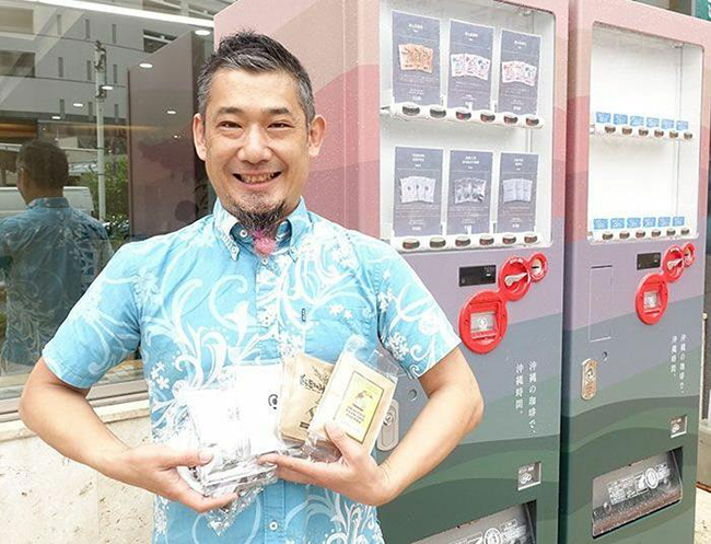 位于日本冲绳县那霸市松尾的病毒检测中心的北谷町大隈一孝社长于近日在该中心附近放置了装有咖啡滴滤袋的无人售货机。大隈一孝社长在县内有7家咖啡馆和烘焙店,我们呼吁使用“我希望冲绳的人们和游客享受冲绳咖啡的魅力”。