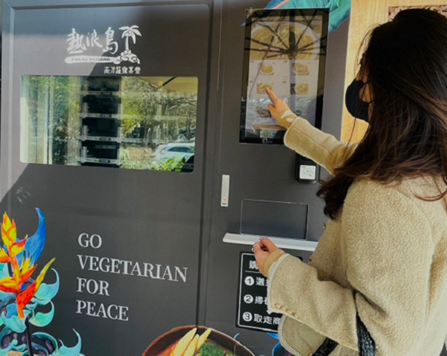 南洋餐饮品牌推出智能蔬食自动贩卖机 可即时加热