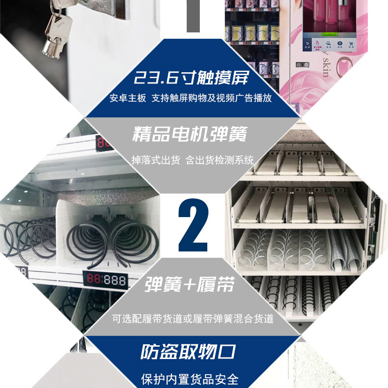 产品型号:EV7736SY-10CT智能药品自动售货机,全新顶出式货道设计,掉落式出货,114大容量货道(货道大小可调)23.6寸安卓触屏,适合售卖非处方药、保健品等商品(药品)