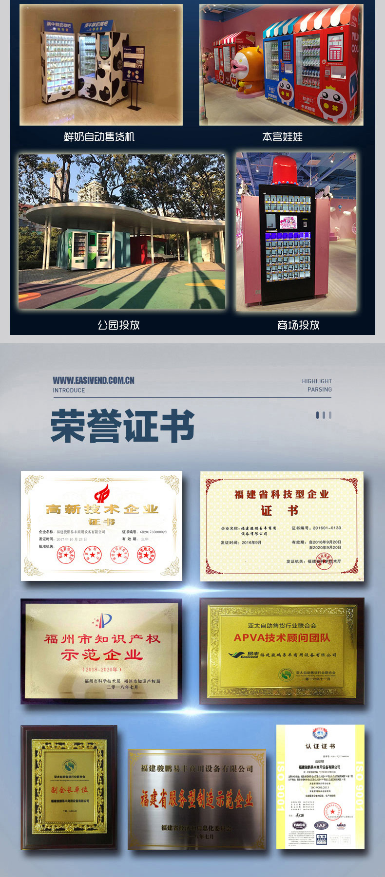 产品型号:EV7736EH中间取货自动售货机,适合售卖:生鲜、牛奶、鸡蛋、玻璃瓶装等易碎的商品