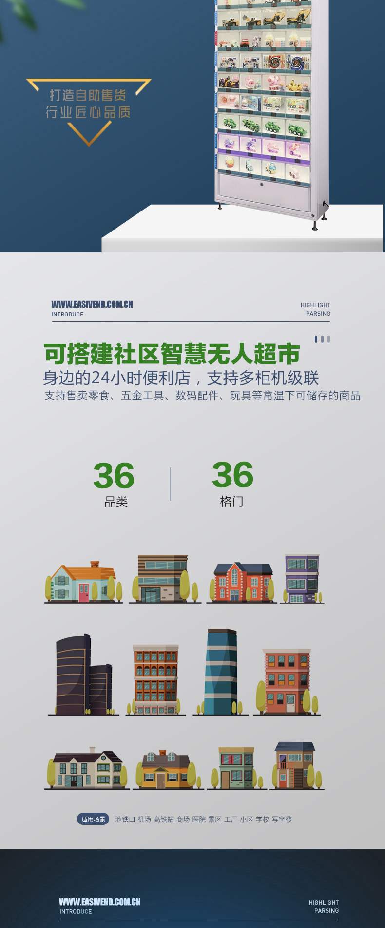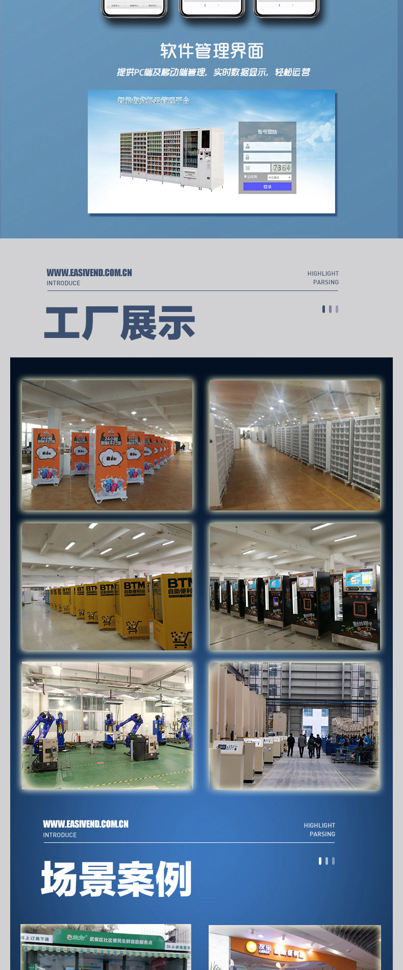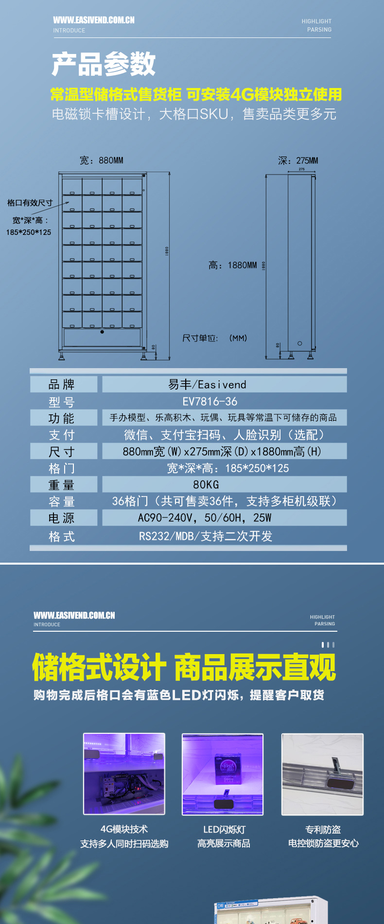 产品型号:EV7736EH中间取货自动售货机,适合售卖:生鲜、牛奶、鸡蛋、玻璃瓶装等易碎的商品