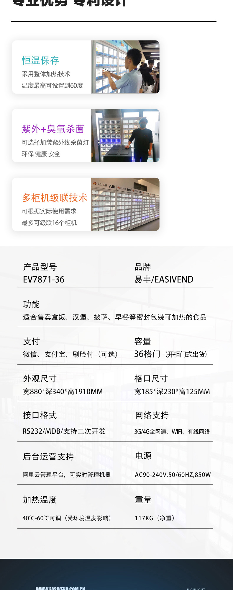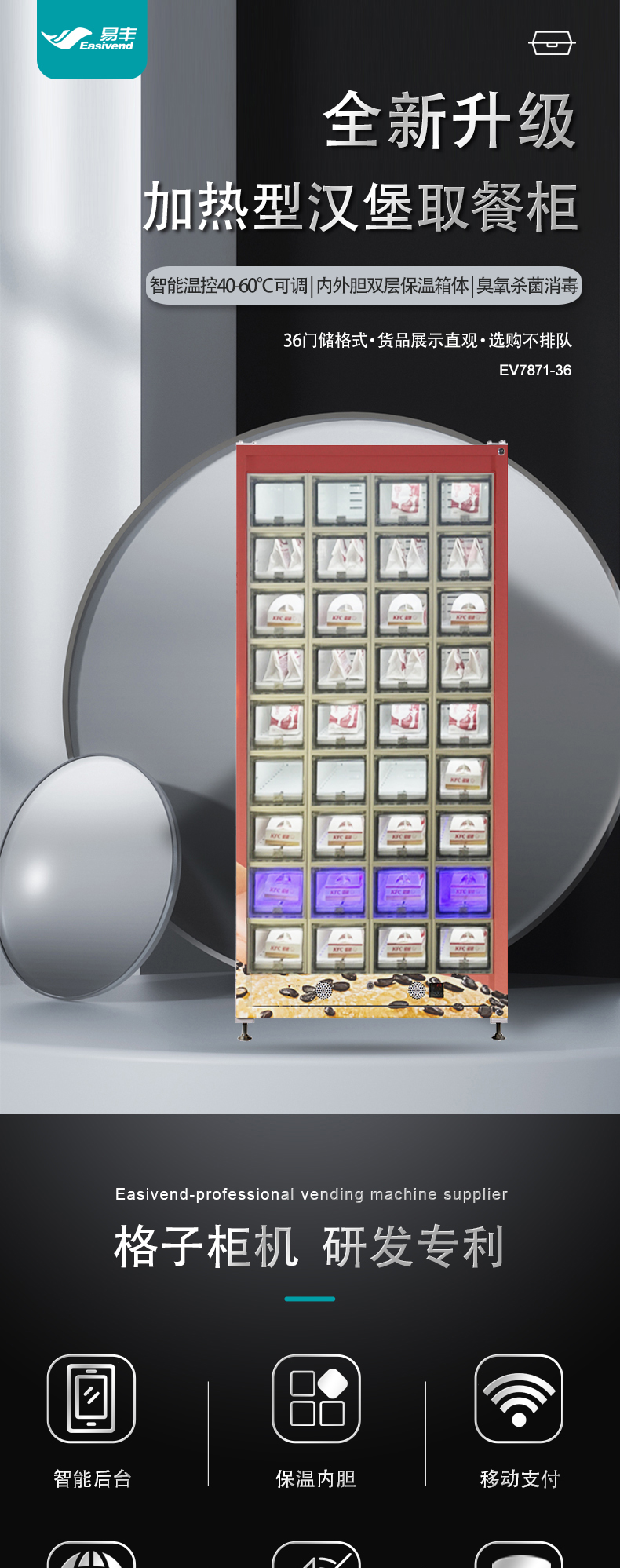 EV7871-36易丰盒饭快餐自助售卖机 加热型格子柜自动售货机 早餐汉堡贩卖机