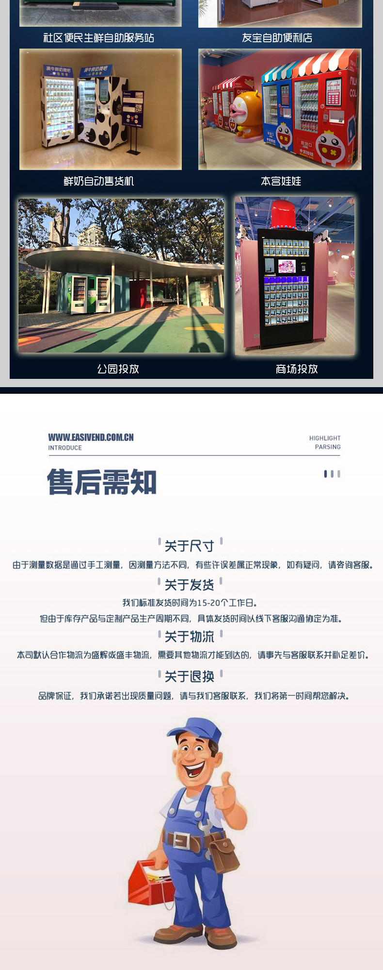 产品型号:EV7736EH中间取货自动售货机,适合售卖:生鲜、牛奶、鸡蛋、玻璃瓶装等易碎的商品